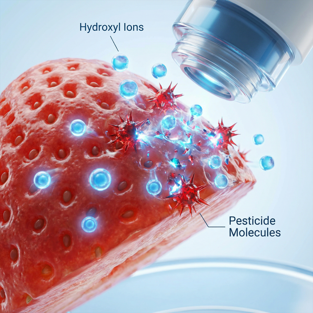 The world’s most advanced fruit & veggie cleaner. Removes 99.9% of pesticides, wax, and bacteria in 5 minutes—using only water.